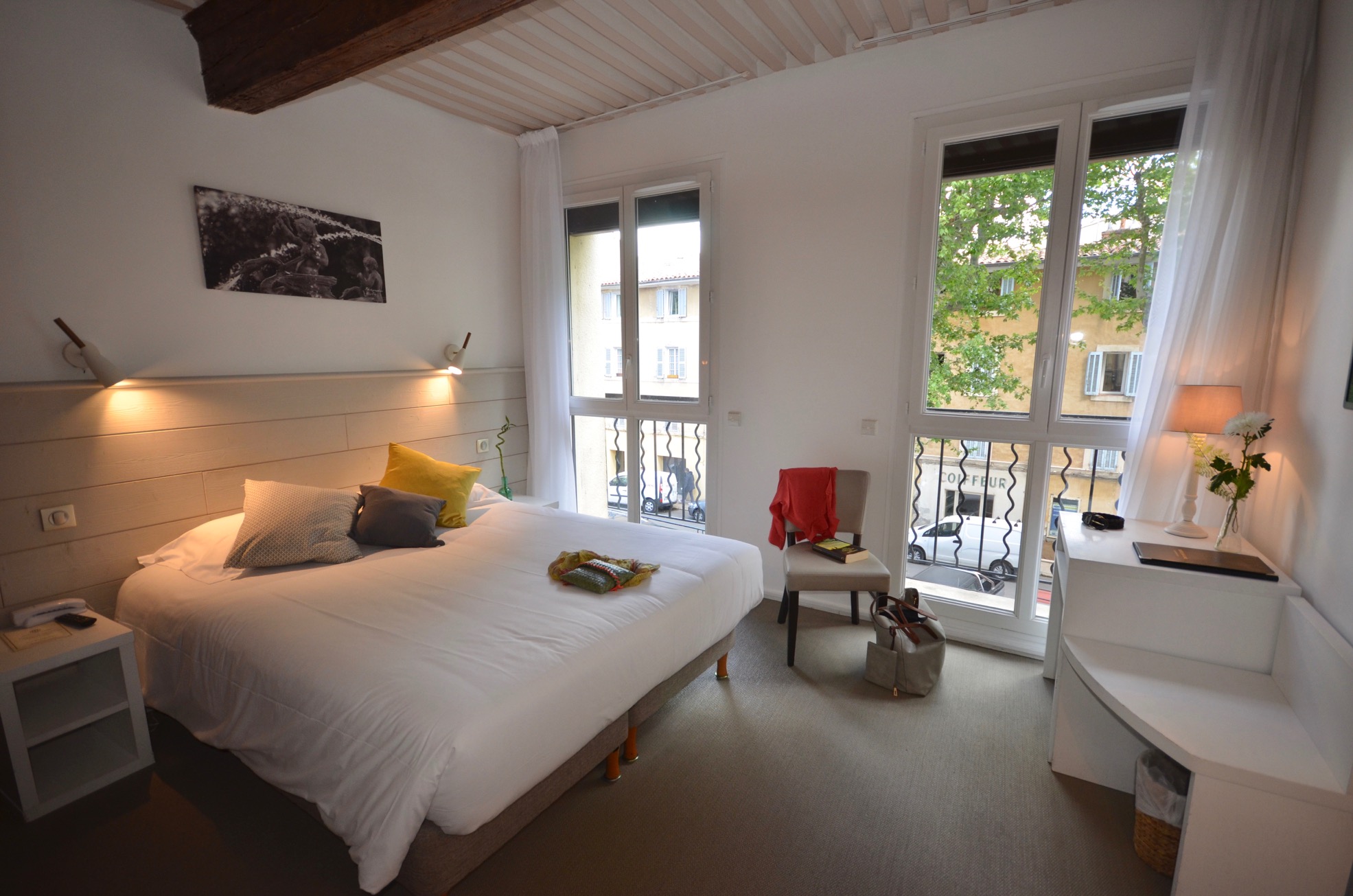 Chaque chambre propose une couette douillette, d’une télévision LCD 32 pouces, d’un téléphone directe avec numéro privé, wifi gratuit et d’un sèche-cheveux dans la salle de bain.